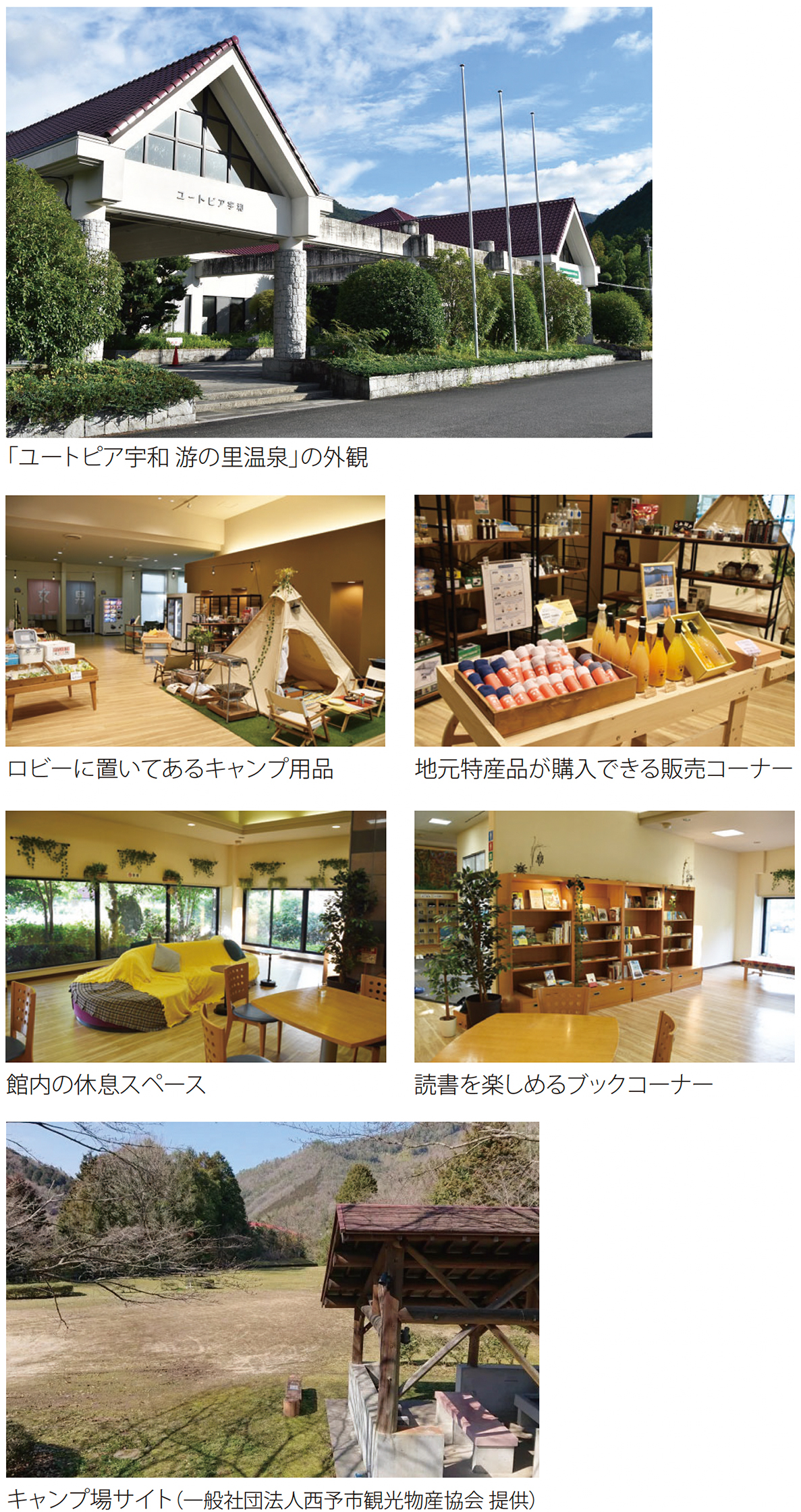「ユートピア宇和 游の里温泉」は、愛媛県西予市の深い緑に囲まれた「朝霧湖(あさぎりこ)」の湖畔にある温浴施設でキャンプ場も併設されています。松山自動車道「西予宇和IC」より県道29号線を野村方面へ車で約15分のところにあります。地下600mから湧き出る良質の冷泉を加熱した温泉では、大浴場のガラス窓から朝霧湖周辺の雄大な自然を望みながら、ゆったりと過ごすことができます。