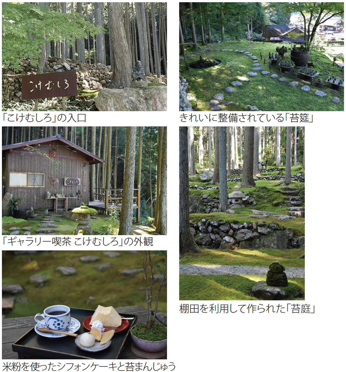 愛媛県西予市の里山にある「苔筵」は、四国八十八景に選ばれており、一面を苔でおおわれた癒しの世界が広がっています。「ギャラリー喫茶 こけむしろ」では、外のウッドデッキで自然を感じながらティータイムを楽しめます。地下水で入れたコーヒーなどのドリンクや地元食材を使ったスィーツは絶品です。苔庭だけの散策も可能ですが、維持管理協力金として入庭料100円が必要です。小学生以下のみの同伴やお子様のひとり歩きはご遠慮いただいています。また、苔を踏まないようにお願いします。